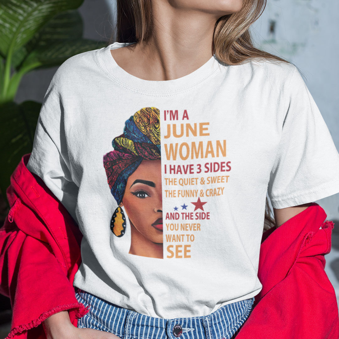 Motivational Quote Shirt – I Am A June Woman I Have 3 Sides Shirt