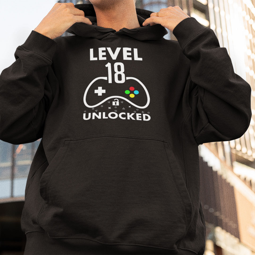 18th Birthday Gaming Shirt – Level 18 Unlocked Gamer Birthday Tee