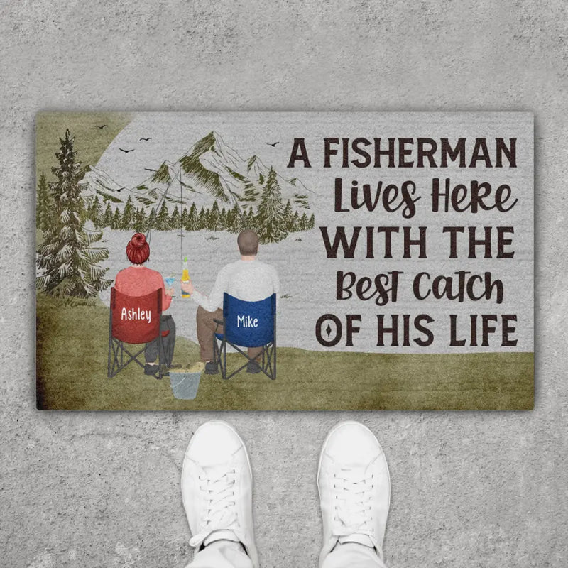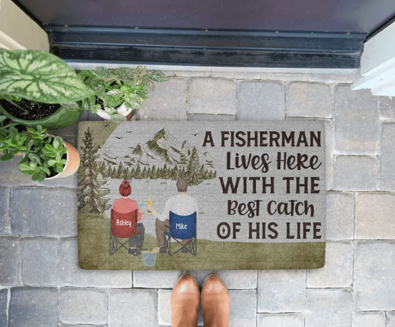 The Fisherman Lives Here With The Best Catch Of His Life custom doormat is a charming nod to love, laughter, and fishing adventures shared together. Ideal for anglers and their partners, this personalized fishing doormat combines humor with heartfelt meaning. Made with weather-resistant materials and detailed print, it’s perfect for cabins, lake houses, or boat docks. Personalize it with your names or message for a warm, welcoming touch. Whether it’s a gift for Father’s Day, anniversaries, or a fisherman’s home, this doormat celebrates love as the greatest catch of all.