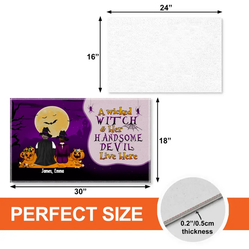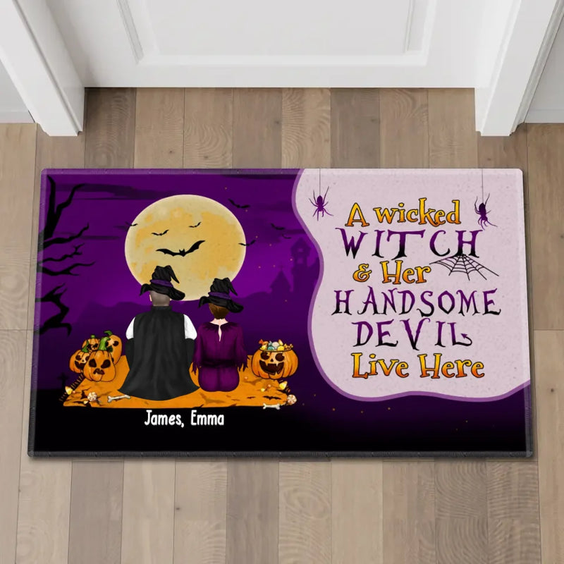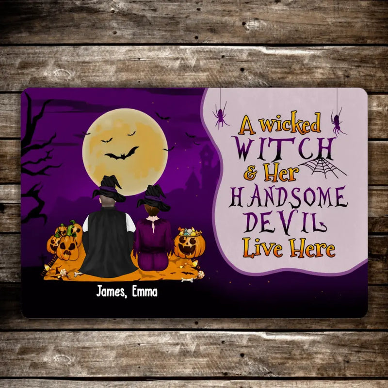 A Wicked Witch Her Handsome Devil Live Here – Personalized Gifts Custom Halloween Doormat For Couples