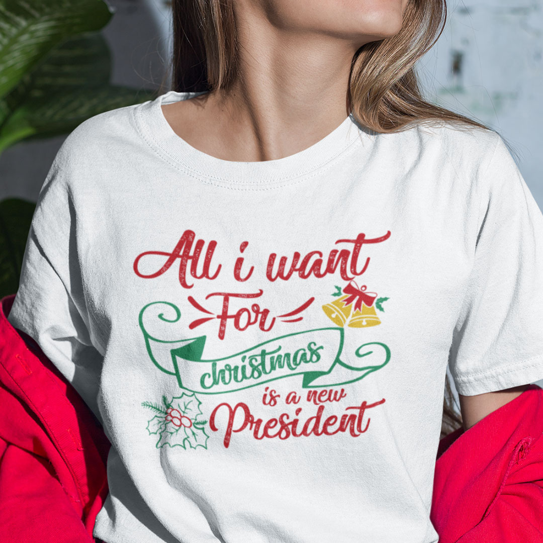 This holiday season, showcase your patriotic spirit with the All I Want For Christmas Is A New President Shirt. Designed for political enthusiasts and anyone looking to make a bold statement, this shirt combines humor and holiday cheer. As families gather, let your shirt be a conversation starter, evoking smiles and laughter. Crafted from high-quality materials for ultimate comfort, it’s perfect for holiday gatherings, parties, and casual get-togethers. Make your wish known this Christmas; whether you’re at a festive event or simply lounging at home, this shirt resonates with everyone who believes in change. Order now and wear your heart on your sleeve this season!