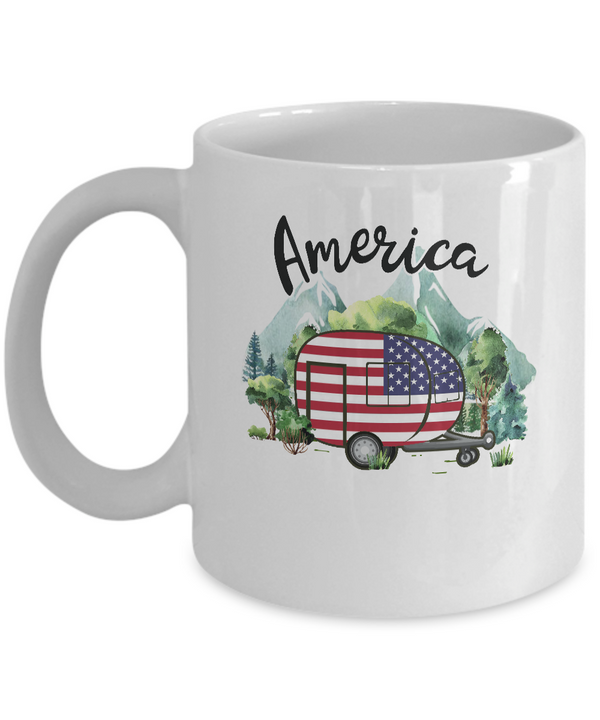 America Camping Mug – Patriotic American Flag Independence Day Gift for Outdoor Enthusiasts