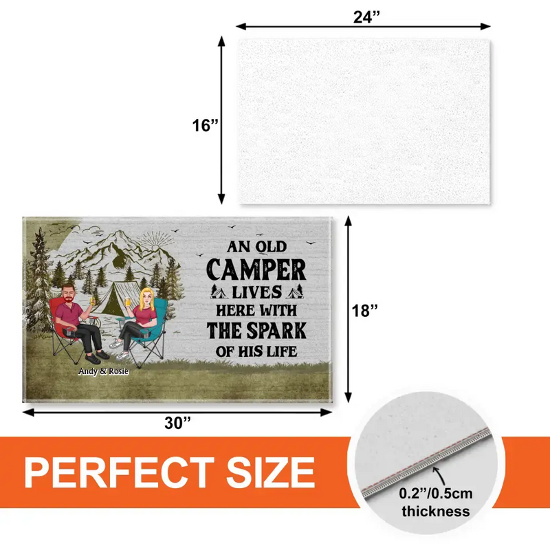 Celebrate lasting love and adventure with the Camping Romance Gift – “An Old Camper Lives Here With The Spark Of His Life” doormat. Perfect for couples who share a passion for camping, this personalized mat symbolizes enduring affection and fun-filled outdoor memories. Crafted for durability, it’s suitable for both indoor and outdoor use. Customize it with names or dates for a sentimental touch. A thoughtful gift for anniversaries or retirement, this doormat tells a love story of two people who found their spark in nature and never stopped exploring together.