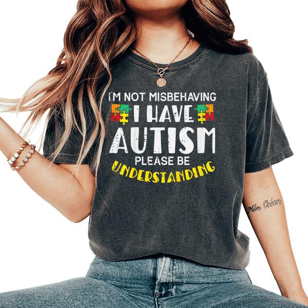 Raise awareness with compassion wearing the Autism Awareness Graphic – Kids Not Misbehaving I Have Autism Understanding Boys Girls Kids Women’s Oversized Comfort Colors T-Shirt. Designed to foster understanding and empathy, this comfortable tee spreads an important message about autism acceptance. With a vibrant design and clear communication, this Autism Understanding shirt helps others see the world through kindness. Ideal for teachers, parents, and supporters of neurodiversity, it’s more than clothing—it’s a statement of love.