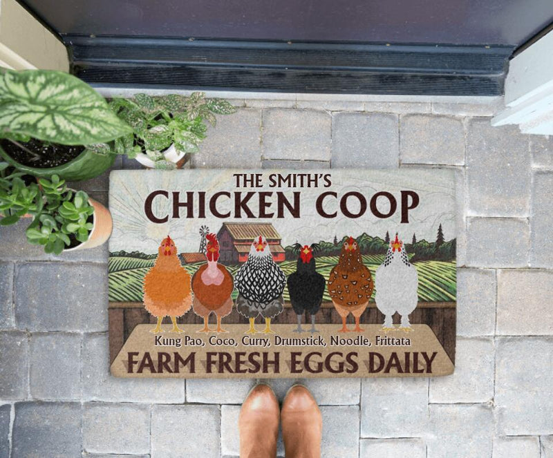 The rustic charm of the Chicken Coop Farm Fresh Eggs Daily personalized doormat brings farmhouse life right to your doorstep. Designed for farmers, chicken keepers, and rural families, it combines humor with country warmth. Its durable construction keeps your floors clean while its vibrant print adds character to your entryway. Customize it with your family name or farm details for a unique touch. This doormat is ideal for gifting to those who love the simplicity and beauty of country living. Every glance reminds guests that fresh eggs, hard work, and good humor are what make a home truly special.