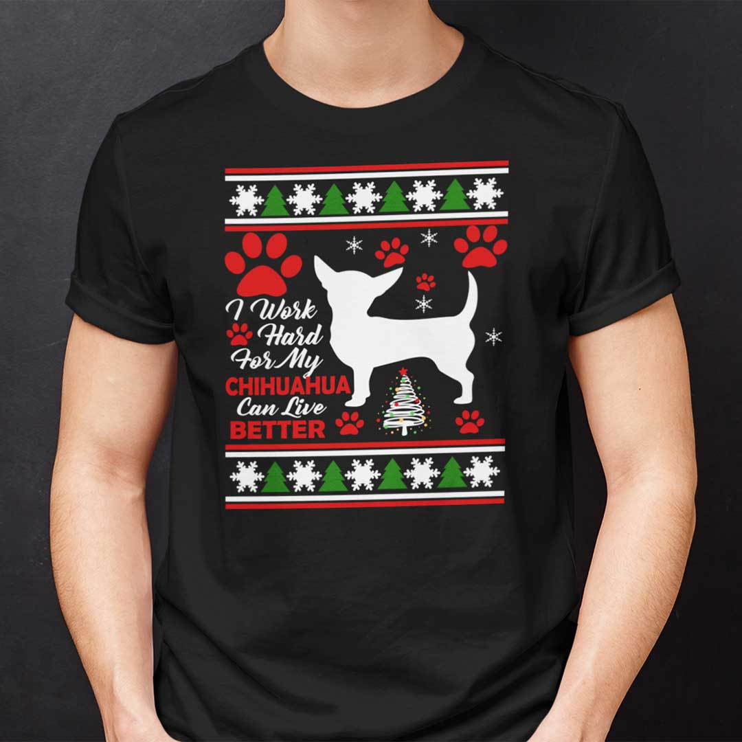 Embrace the holiday spirit with the Chihuahua Christmas T-Shirt I Work Hard For My Chihuahua Can Live Better. This charming tee is designed for devoted Chihuahua lovers who want to showcase their commitment to their furry friends. Made from soft, breathable fabric, this shirt ensures comfort while you celebrate the festive season. It’s not just a t-shirt; it’s a statement of love for your canine companion. Imagine the joy you’ll feel as you wear this during holiday gatherings or while relaxing at home. Whether you’re gift shopping for a fellow dog enthusiast or treating yourself, this tee will be a hit! Get ready to turn heads and spread joy this Christmas season. Order your Chihuahua Christmas T-Shirt today and make this holiday special!
