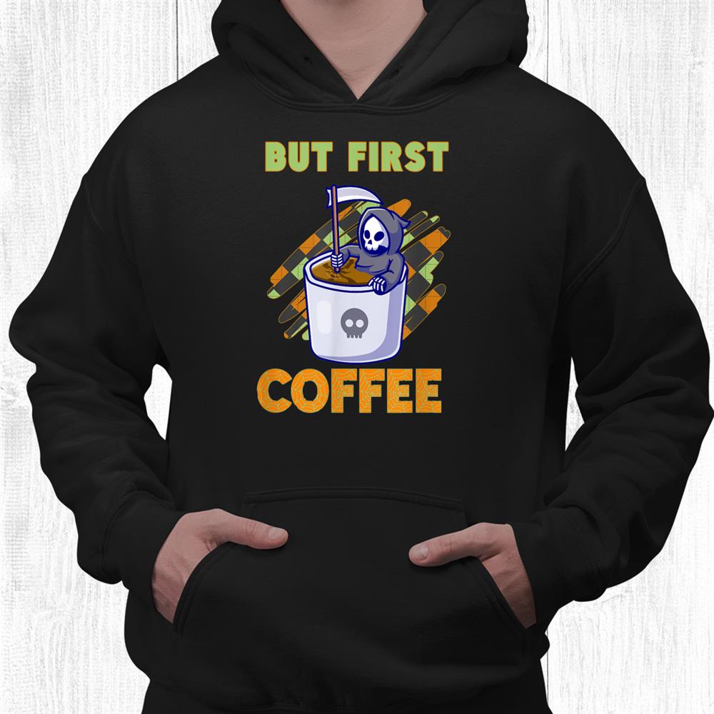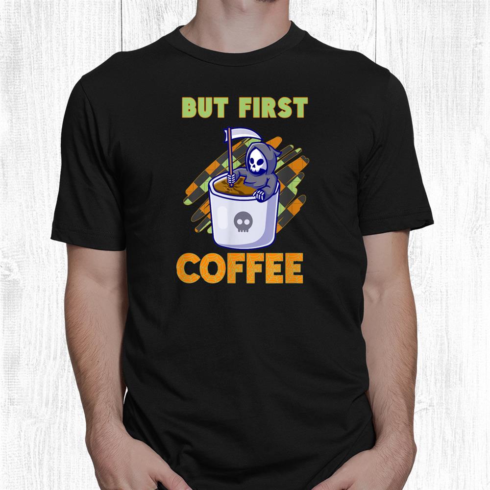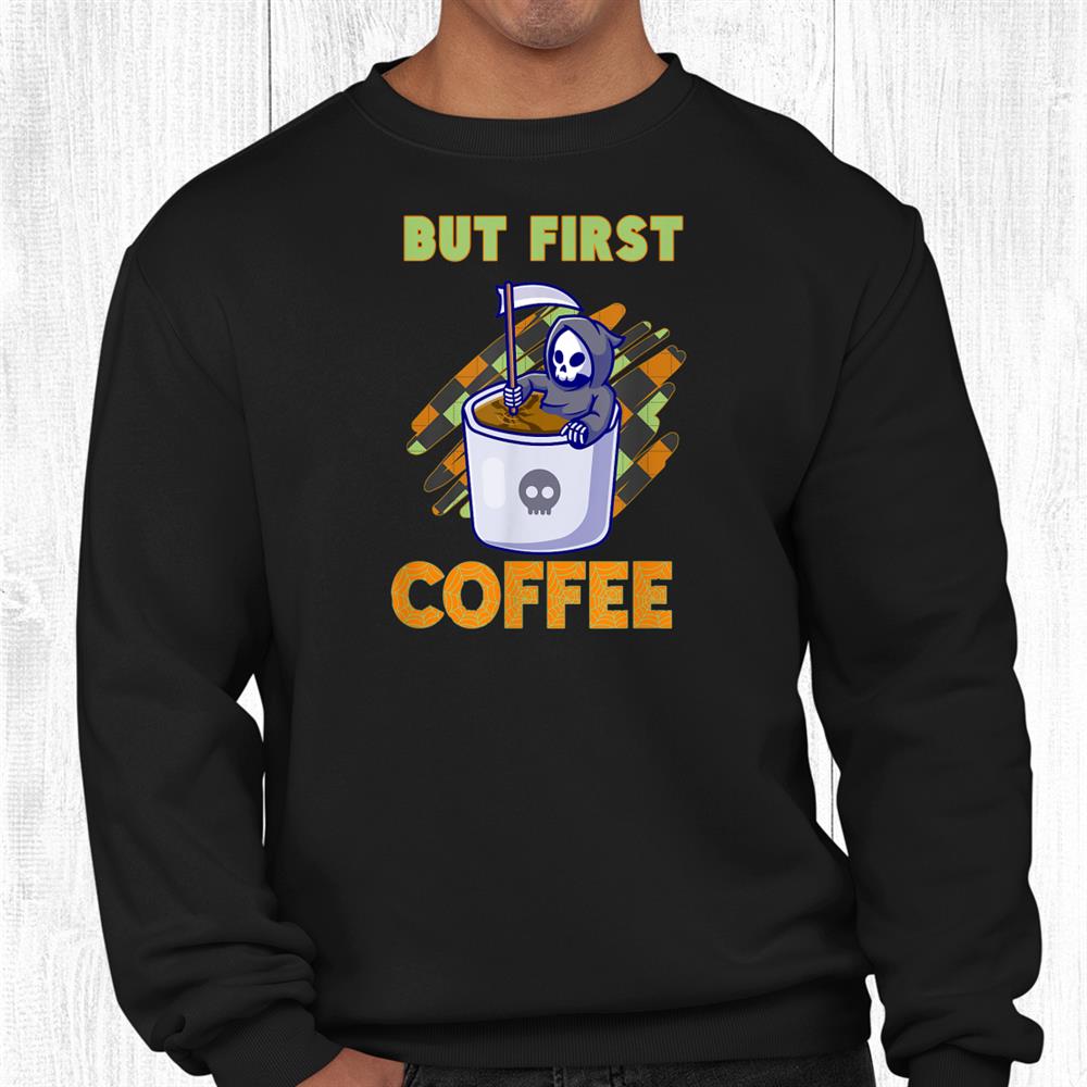 For coffee addicts who live for spooky vibes, the Halloween Grim Reaper But First Coffee Funny Shirt captures your mood perfectly. The design shows a caffeine-craving Grim Reaper clutching his favorite brew before collecting souls—a hilarious twist on morning struggles. Crafted with soft, breathable cotton, the Halloween Grim Reaper But First Coffee Funny Shirt brings comfort and humor to Halloween mornings, office parties, or casual wear. Great for coffee lovers and Halloween fans alike, it’s a clever conversation starter that pairs perfectly with jeans or pajamas.