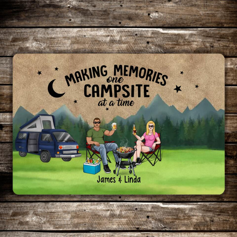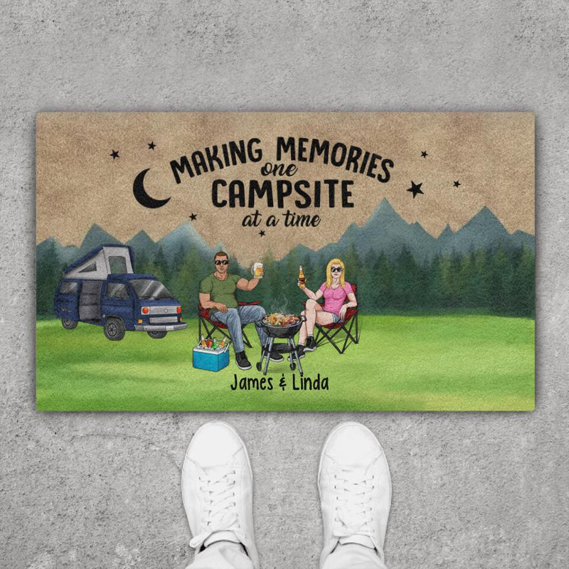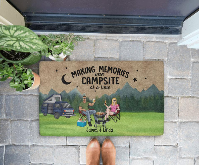 Turn your home or camper into a cozy retreat with the “Making Memories One Campsite at a Time” personalized doormat. It’s ideal for couples who love outdoor adventures and cozy nights by the fire. You can add your names or camping theme for a customized touch. The weather-resistant fibers keep dirt out and last through every trip. A great choice for RV owners, camping couples, or nature-loving families who know that the best stories begin at the campsite.