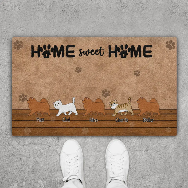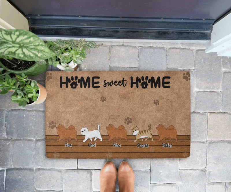 Celebrate love, laughter, and paw prints with this “Home Sweet Home” cat and dog doormat. Whether your home is full of wagging tails or gentle purrs, this mat welcomes everyone with warmth. Customize it with your pets’ names for a heartfelt touch. The non-slip backing ensures safety, while the sturdy surface traps dirt efficiently. Perfect for animal lovers who believe that home is where the fur is, this mat makes an adorable gift for families and pet owners alike.