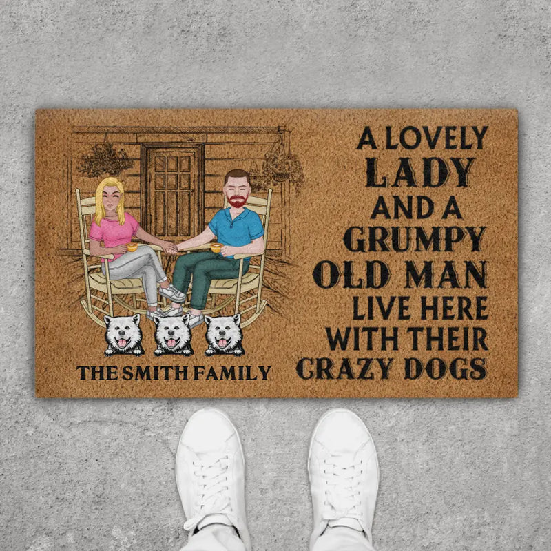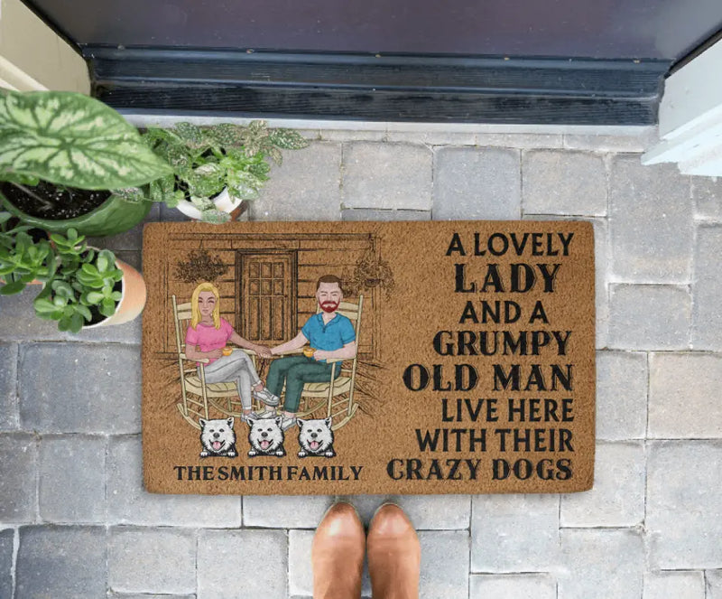 This “A Lovely Lady and a Grumpy Old Man Live Here” custom dog family doormat brings both humor and heart to your home’s entrance. Add your names or your dogs’ portraits for a truly one-of-a-kind mat. Designed for durability and charm, it keeps your doorstep clean while showcasing your relationship’s fun side. A wonderful gift for couples, pet owners, and dog lovers who believe every love story deserves a few paw prints along the way.