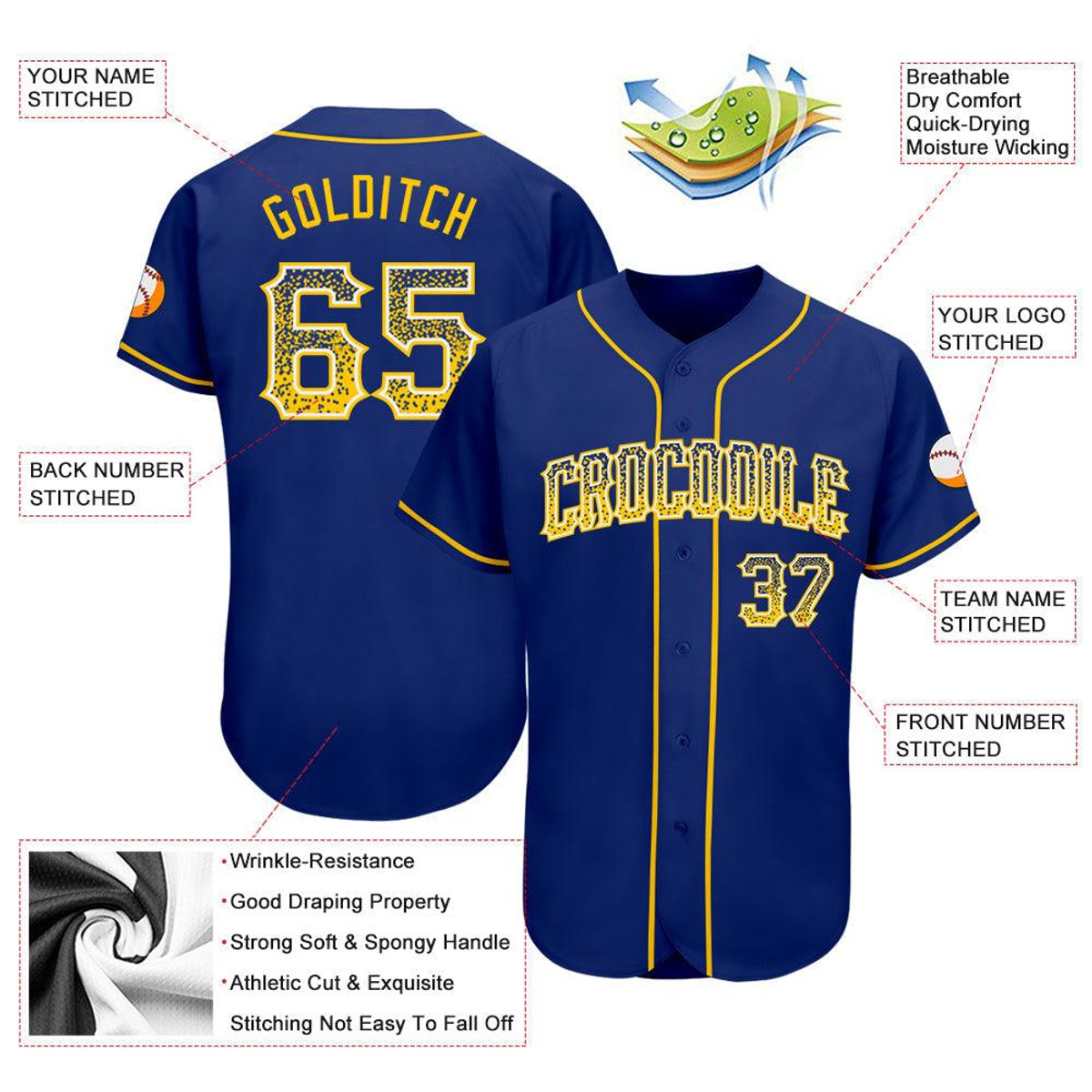 The Custom Royal Gold-White Authentic Drift Fashion Baseball Jersey is designed for those who embrace street style with a touch of elegance. Its royal and gold color combination exudes luxury, while the white accents keep it balanced and wearable. Ideal for sports events, casual outings, or layering into streetwear looks, this jersey delivers both comfort and fashion. The Custom Royal Gold-White Authentic Drift Fashion Baseball Jersey is perfect for people who want to stand out with confidence.