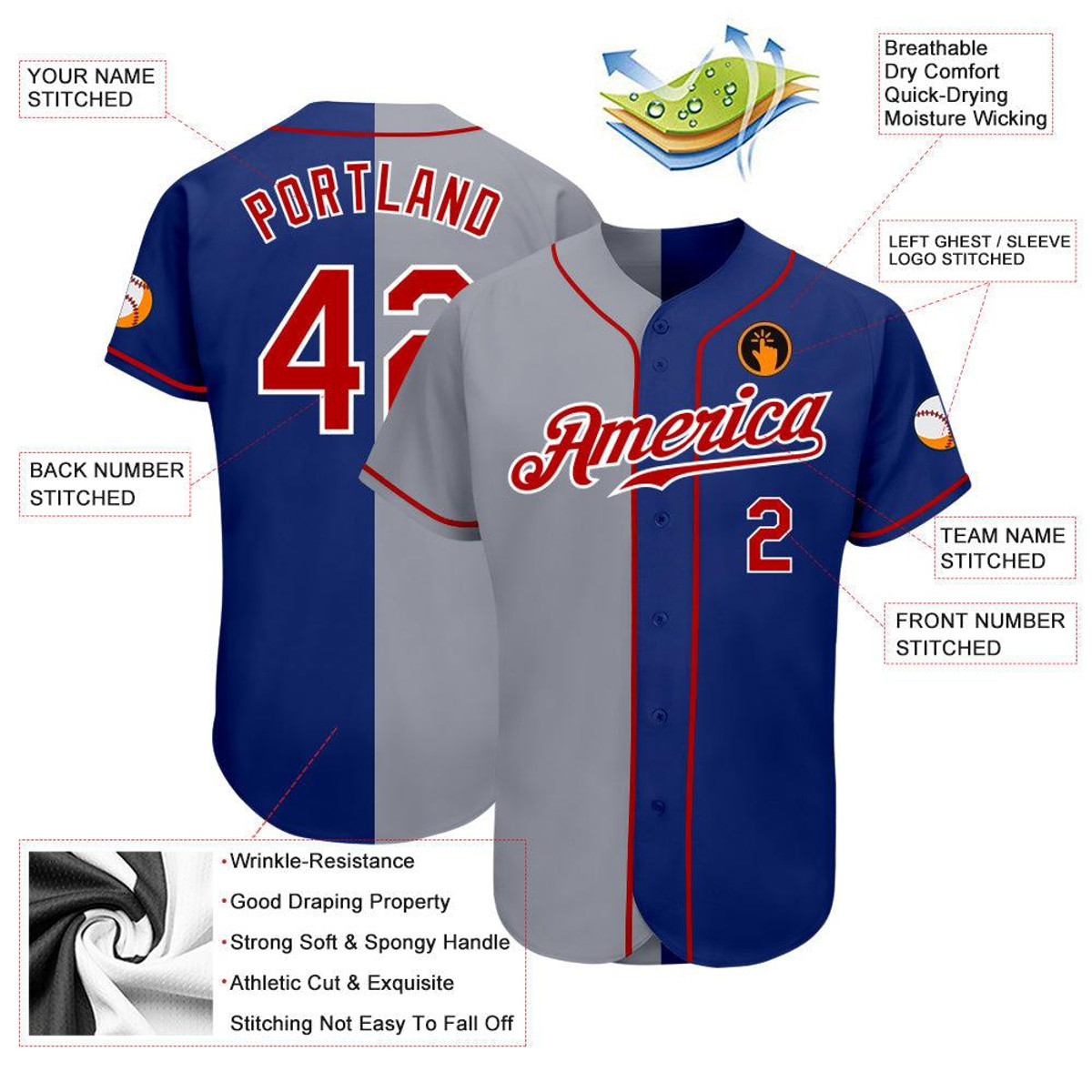 The Custom Royal Red-Gray Authentic Split Fashion Baseball Jersey is a powerful blend of athletic heritage and urban streetwear style. The royal blue base paired with deep red and gray split color panels creates a bold and masculine look that stands out in any crowd. Made from lightweight, breathable fabric, it ensures maximum comfort for sports, workouts, or daily casual wear. The durable material and authentic design make it a versatile choice for athletes and fashion enthusiasts alike. Whether you’re heading to a ball game, styling it with sneakers for an urban look, or simply enjoying a casual day out, the Custom Royal Red-Gray Authentic Split Fashion Baseball Jersey guarantees both comfort and standout appeal.