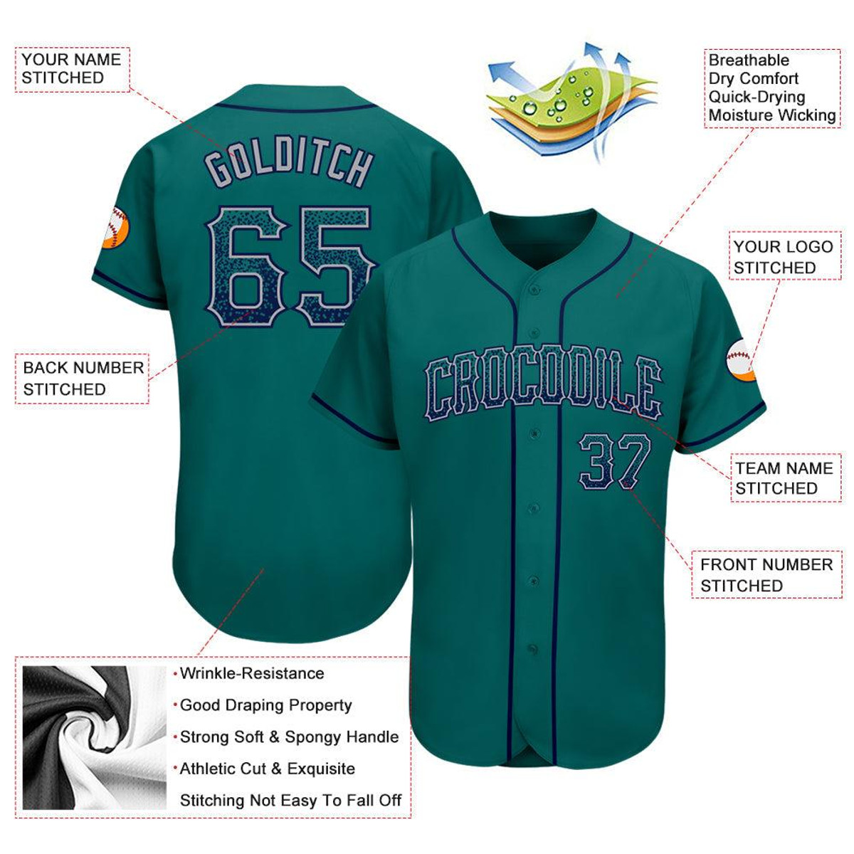 With a sleek gradient finish, the Custom Royal Teal Navy-Gray Authentic Drift Fashion Baseball Jersey is perfect for athletes who want both comfort and style. The drift pattern combines navy, teal, and gray in a dynamic design. Engineered with lightweight, breathable fabric, it offers flexibility and lasting wear. Add your team or personal details for a unique, high-performance jersey that stands out both on the field and in casual settings.