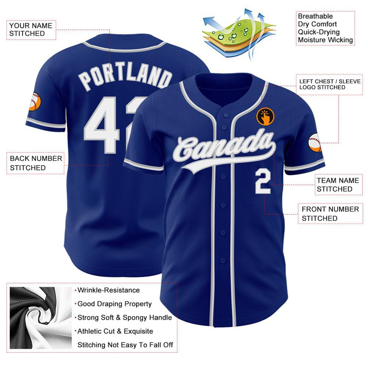 The Custom Royal White-Gray Authentic Baseball Jersey combines clean, modern style with timeless athletic tradition. Featuring a royal base accented by crisp white and subtle gray, it offers a versatile and understated look. Built from lightweight, breathable materials, it ensures comfort for long wear and durability for both active and casual use. The authentic baseball silhouette makes it a wardrobe staple, suitable for pairing with jeans, joggers, or shorts. Whether on the field or off, the Custom Royal White-Gray Authentic Baseball Jersey delivers effortless style and functionality.