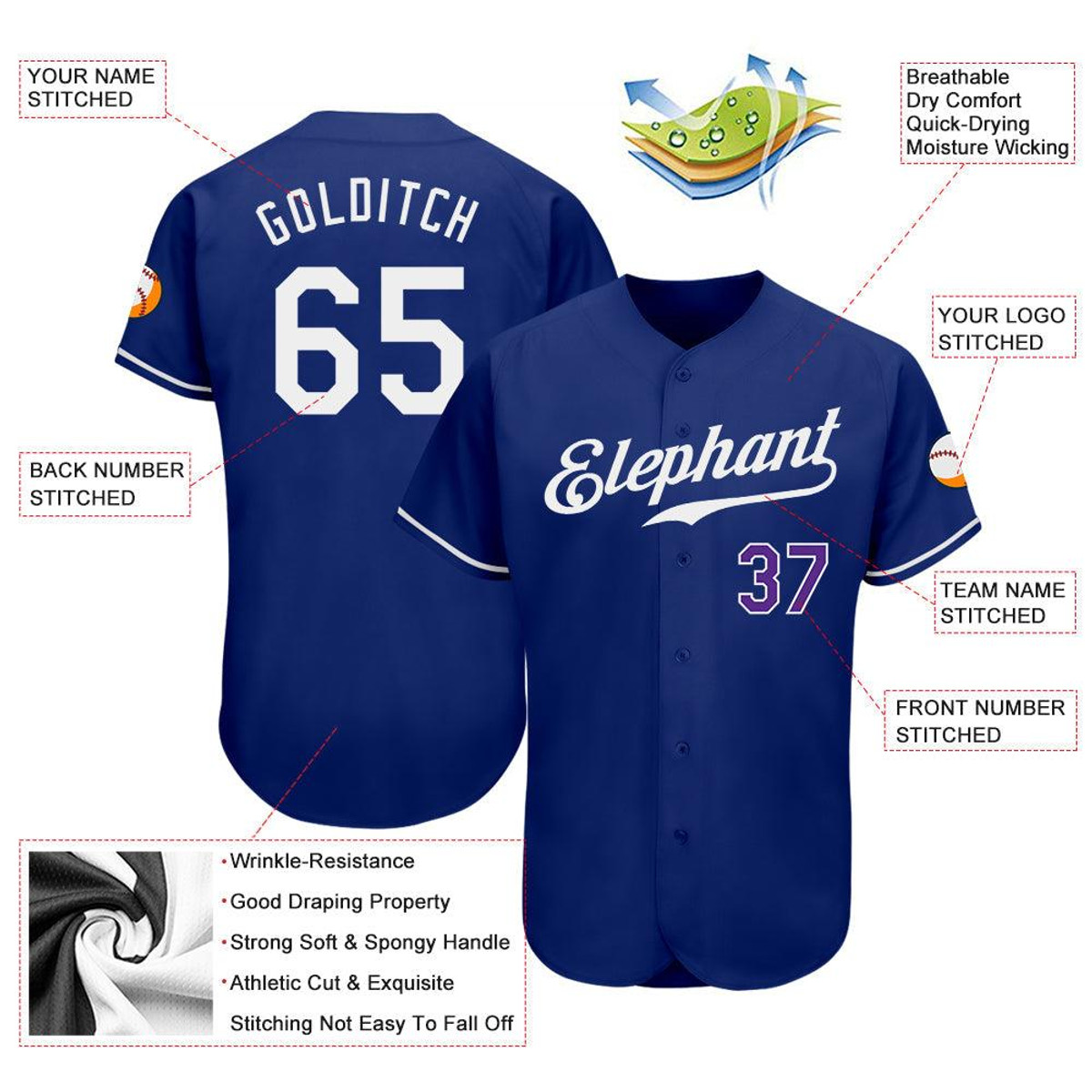 Bold and stylish, the Custom Royal White-Purple Authentic Baseball Jersey makes a statement with its crisp royal base accented by white and deep purple details. Designed from breathable and durable fabric, this jersey provides comfort for both sports and lifestyle wear. Its authentic baseball cut ensures versatility, making it easy to pair with athletic or streetwear outfits. Whether you’re heading to practice, hanging out with friends, or layering it for a unique look, the Custom Royal White-Purple Authentic Baseball Jersey delivers standout appeal while maintaining its classic athletic essence.