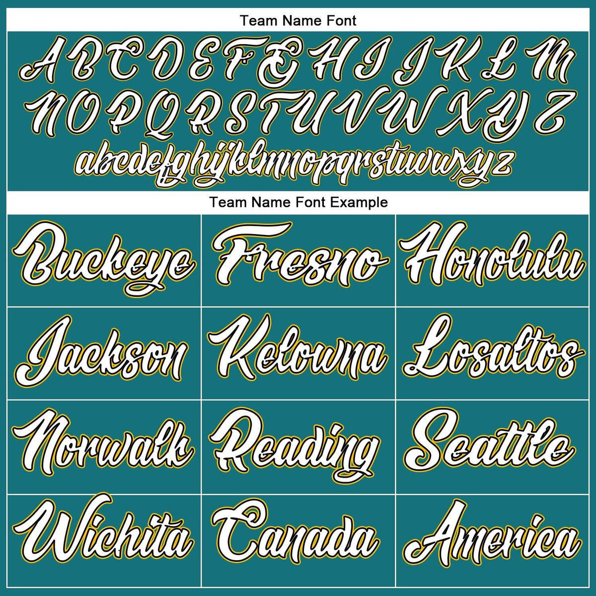 The Custom Teal White-Gold Authentic Baseball Jersey combines rich teal with luxurious gold highlights and crisp white details for a bold yet elegant look. Its design reflects both athletic tradition and modern fashion trends. Built from high-quality fabric, it ensures breathability and durability for extended wear. The authentic baseball silhouette preserves the heritage of the sport, making it versatile for games, training, or casual styling. With its sophisticated color mix, the Custom Teal White-Gold Authentic Baseball Jersey is perfect for those seeking premium sportswear with a fashionable twist.