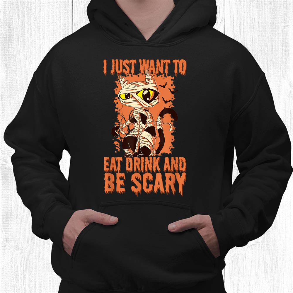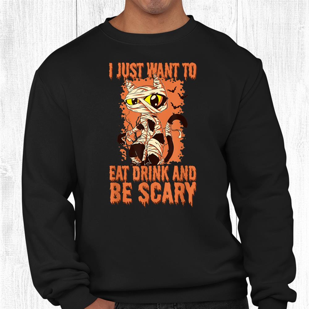 If you love witty Halloween designs, the I Just Want To Eat Drink And Be Scary Spooky Cat Halloween Shirt is made for you. This fun graphic tee showcases a mischievous cat ready for Halloween fun. Perfect for parties, night outs, or cozy fall evenings, it blends humor with charm. The design’s detailed art and comfortable fabric make it a must-have for cat lovers and Halloween fans alike.