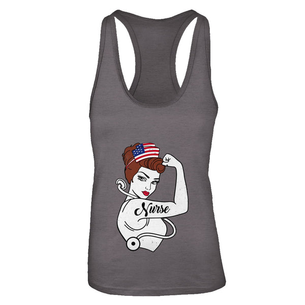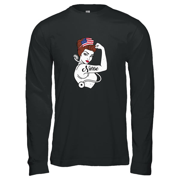 Empowered American Flag Tee for Nurses – Strong Women 4th of July Apparel