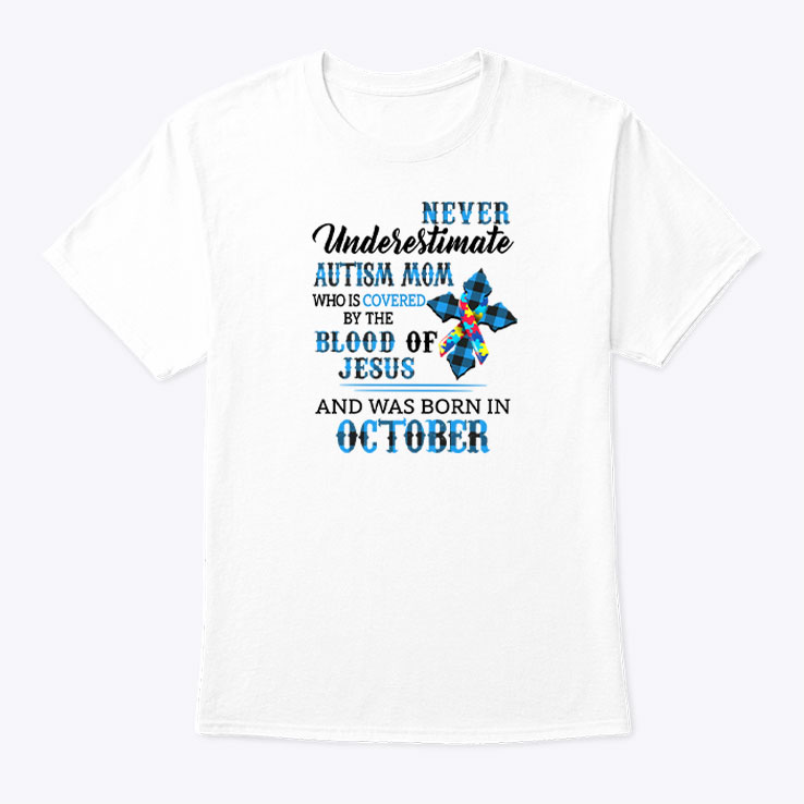 Never Underestimate Autism Mom Covered By Blood Of Jesus Shirt October is the perfect way for proud moms of children with autism to showcase their strength and faith. This emotional and empowering shirt serves as a reminder of the love and resilience that come with raising an exceptional child. Crafted with comfort and style in mind, the shirt offers a soft fit, making it ideal for everyday wear or special occasions. Whether you’re attending an autism awareness event in October or simply want to express your faith and pride, this shirt is your go-to choice. Wearing this shirt not only supports you but also raises awareness about autism while celebrating the power of faith. Embrace your journey as an autism mom with love and confidence in our vibrant shirt.