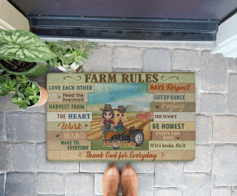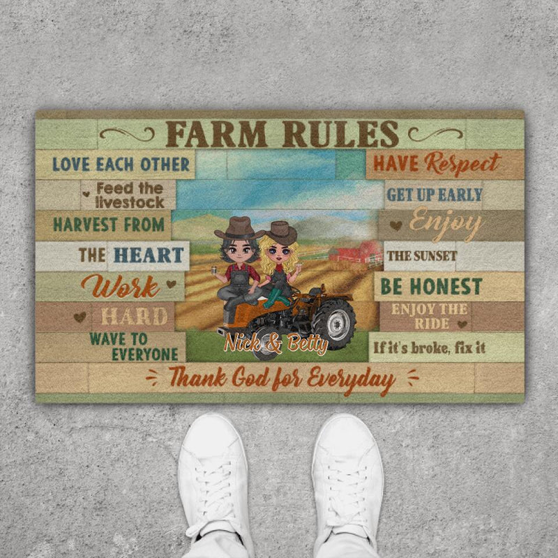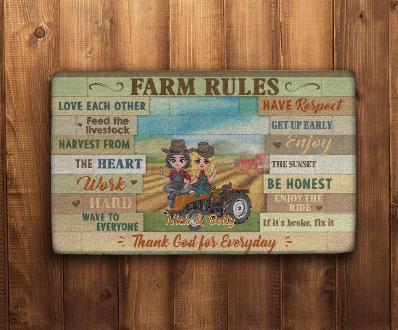 Welcome visitors with a smile and a laugh using the Farm Rules personalized doormat. Designed for couples, families, or friends who embrace country living, this doormat lists the unspoken rules of life on the farm—fun, humor, and hard work. Built from tough, easy-clean materials, it’s ideal for outdoor use and can be customized with names or a family message. Whether you live on acres of farmland or simply love the rural lifestyle, this doormat brings rustic joy to your entryway. It’s the perfect blend of functionality, farmhouse charm, and lighthearted spirit for any home.