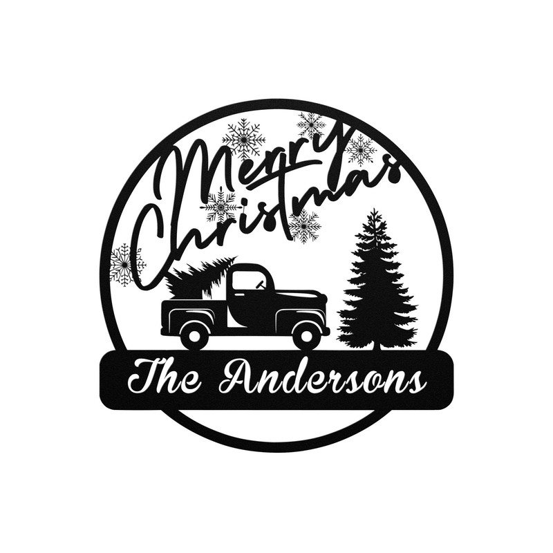 Farmhouse Holiday Sign – Custom Merry Christmas Truck Metal Sign Truck Christmas Truck Stencils Decor