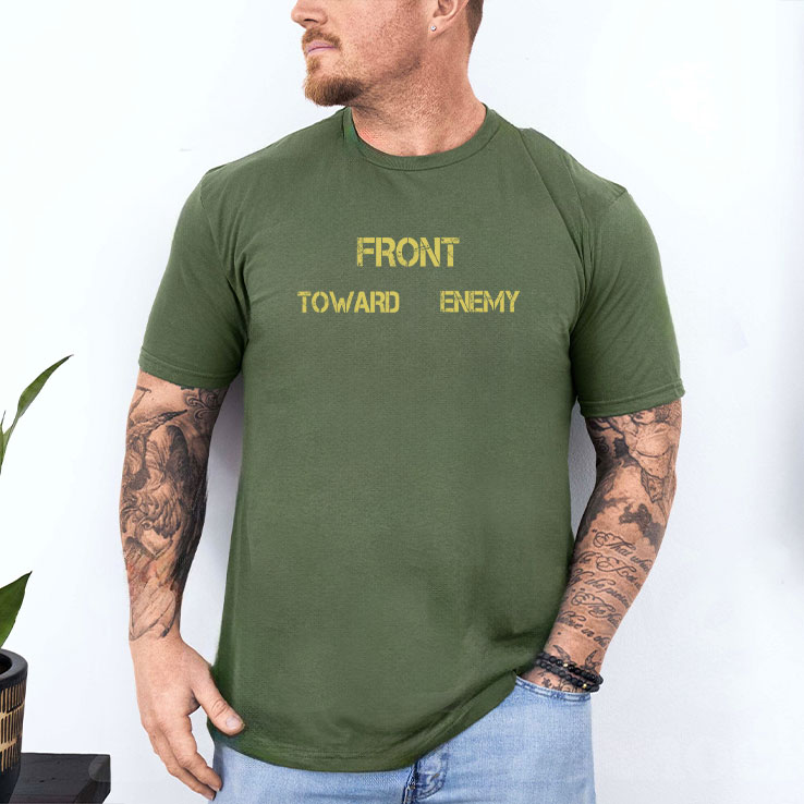 Unleash your inner warrior with the Front Toward Enemy T Shirt Claymore Mine M18A1, designed specifically for military enthusiasts and tactical apparel lovers. This high-quality, eye-catching t-shirt features a striking graphic that symbolizes resilience and bravery, ideal for those who hold a deep connection to military values. Not only does it make a statement, but it also offers comfort and style for everyday wear or special events. Whether you’re attending a military-themed gathering or just want to showcase your love for tactical gear, this shirt will turn heads and spark conversations. Upgrade your wardrobe with the Front Toward Enemy T Shirt Claymore Mine M18A1 today – order now and wear your pride boldly!