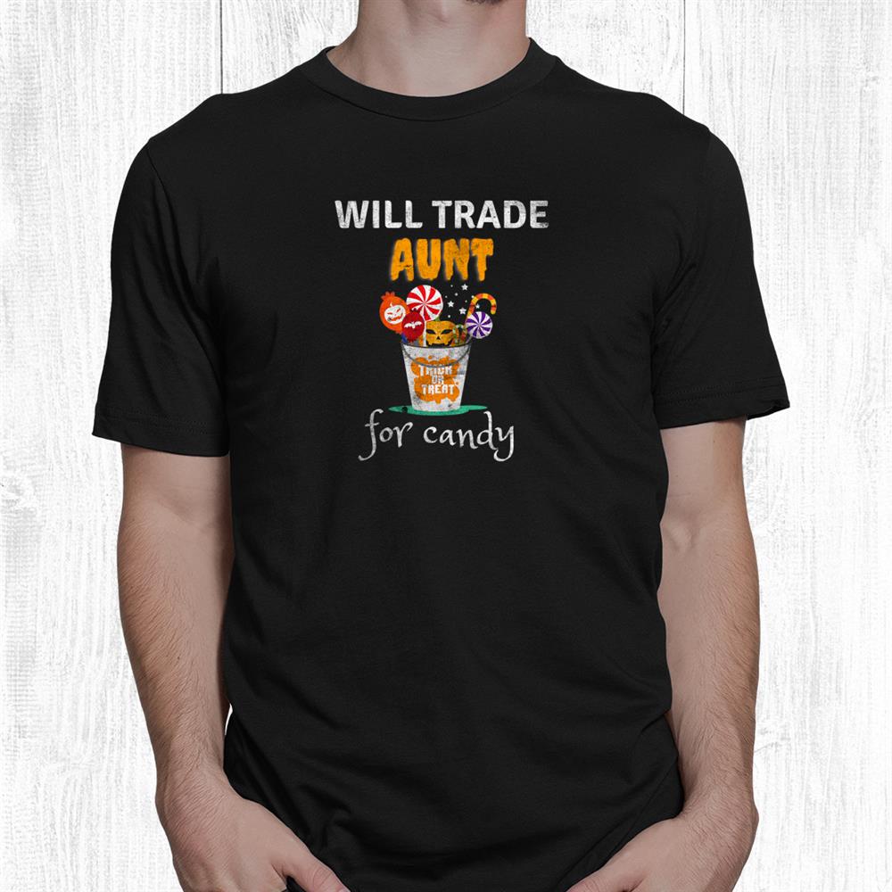 Funny Aunt Costume – Scary Halloween Will Trade Aunt Family Matching Shirt is a playful take on family Halloween humor. With its cheeky “Will Trade Aunt” slogan, it’s perfect for matching family sets or themed gatherings. The high-quality print and soft cotton make it ideal for all-day comfort, whether at a party or pumpkin patch. Add some fun to your outfit with this witty, funny Halloween shirt made for everyone’s favorite aunt.