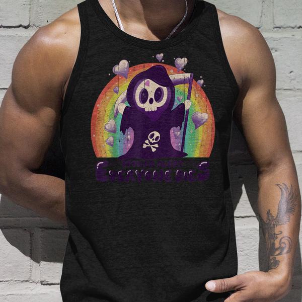 Make a statement with the Spoiler Alert Everyone Dies Vintage Rainbow Ghost Tank Top. This Funny Halloween Humor Shirt mixes dark comedy with a colorful twist. Soft and lightweight, it’s perfect for casual wear, Halloween parties, or those who love witty designs. Embrace humor and irony in style while turning heads everywhere you go.