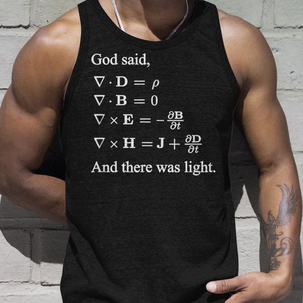 The God Said Maxwell Equations And There Was Light Math Tank Top combines humor, science, and intellect in one. A Funny Science Shirt for physics lovers, it celebrates knowledge with a witty twist. Ideal for students, teachers, or anyone who loves clever math humor, this tank keeps you cool while showing your appreciation for the brilliance of science.