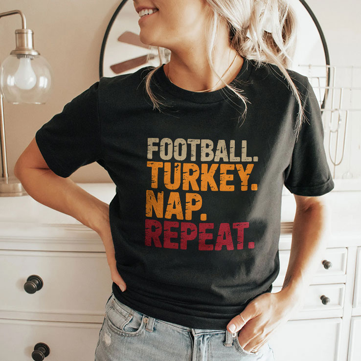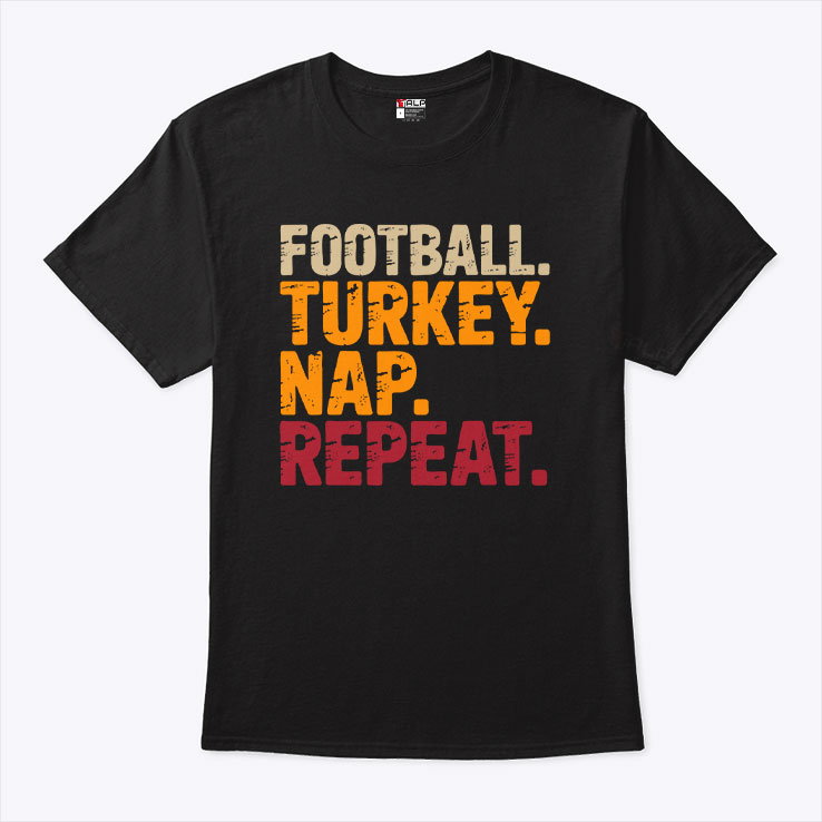 Add a dash of fun to your Thanksgiving gathering with the Football Turkey Nap Repeat Funny Thanksgiving Shirt. Designed for football enthusiasts and families, this tee perfectly encapsulates the joy of the holiday season. Whether you’re cheering for your favorite team, indulging in a delicious turkey feast, or taking a well-deserved nap, this shirt lets everyone know where your loyalties lie. Crafted with comfort in mind, the lightweight fabric ensures you stay cozy while celebrating the festivities. Stand out during family gatherings or football game day with this humorous statement piece that captures the essence of Thanksgiving fun. Embrace the laughter and love of the season with this must-have shirt!