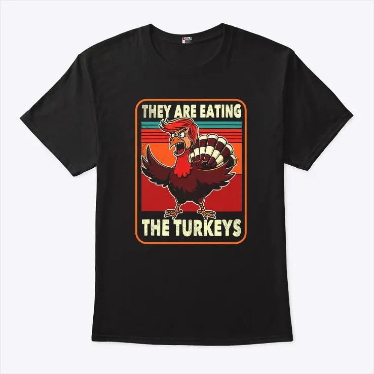 Celebrate Thanksgiving in style with the They Are Eating Turkey Donald Trump Thanksgiving T-Shirt. Designed for fans of Donald Trump, this humorous tee combines your love for the holiday with a fun political twist. Picture this: you’re at the dinner table, discussing turkey recipes while wearing this eye-catching shirt! It’s not just a t-shirt; it’s a conversation starter. Made from soft, breathable fabric, it promises comfort during your family gatherings. Whether you’re a die-hard Trump supporter or just want a unique outfit for Thanksgiving, this shirt perfectly captures the spirit of the season. Grab your They Are Eating Turkey Donald Trump Thanksgiving T-Shirt today and enjoy Thanksgiving like never before!