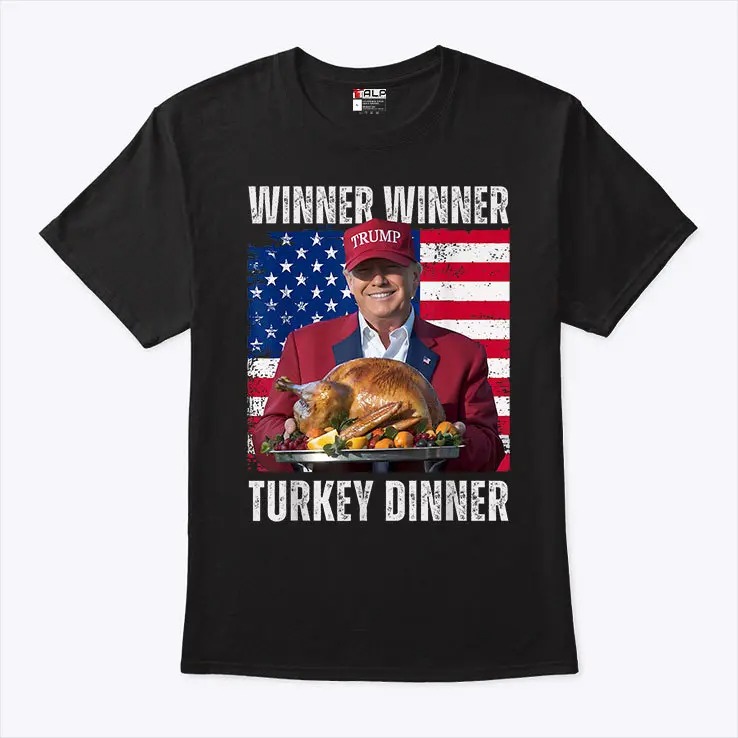 Winner Winner Turkey Dinner Trump Thanksgiving Shirt is the ideal way to showcase your sense of humor this holiday season. Designed for supporters of political satire and Thanksgiving cheer, this shirt seamlessly blends festive fun with a hint of political commentary. Imagine the laughter as family and friends gather around the dinner table, sporting this quirky tee. Whether you’re cooking up a storm in the kitchen or enjoying a football game, this shirt is your go-to choice for expressing your personality. Made from comfortable, high-quality fabric, the Winner Winner Turkey Dinner Trump Thanksgiving Shirt feels great and lasts through many holiday seasons. Stand out and add some laughter to your Thanksgiving celebrations with this unique shirt!