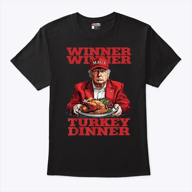 Get ready for a Thanksgiving feast filled with laughter and patriotism! The Trump Winner Turkey Dinner Thanksgiving T Shirt is perfect for both men and women who appreciate a light-hearted yet meaningful celebration. Made from comfortable, high-quality fabric, this shirt will keep you cozy whether you’re hosting a gathering or enjoying time with family and friends. Express your love for your country and a good laugh with this unique design, sparking conversations at your Thanksgiving dinner table. Ideal for those wanting to stand out this holiday season or to gift to a fellow Trump supporter, it’s the perfect attire for a memorable holiday experience. Show your spirit and enjoy the festivities with this playful shirt!