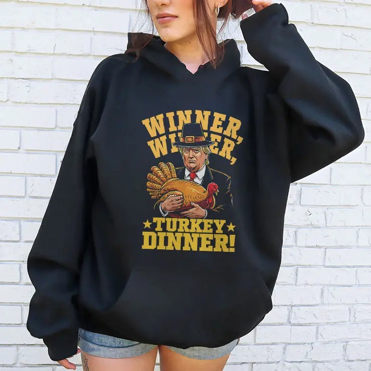 Celebrate Thanksgiving with humor! The Funny Trump Winner Winner Turkey Dinner Thanksgiving Shirt adds a hilarious twist to your festive wardrobe.