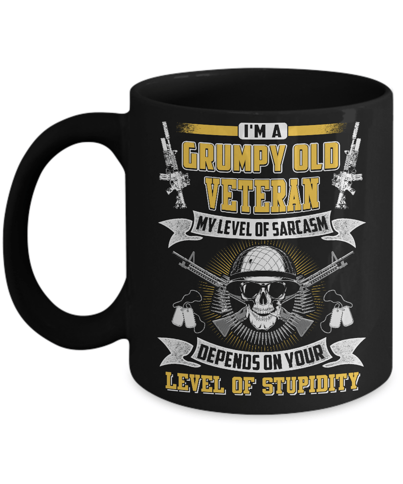 The I’m A Grumpy Old Veteran My Level Of Sarcasm Mug combines humor, veteran pride, and daily functionality. Made from durable ceramic and microwave/dishwasher safe, it’s perfect for coffee, tea, or cocoa. Its witty design is ideal for veterans, friends, or family members who enjoy sarcasm and humor. Perfect as a gift for birthdays, holidays, or casual novelty gifting, this mug offers a fun conversation starter while celebrating personality and life experience. Its quality construction ensures longevity, making it a cherished piece for any veteran or humor lover’s collection.