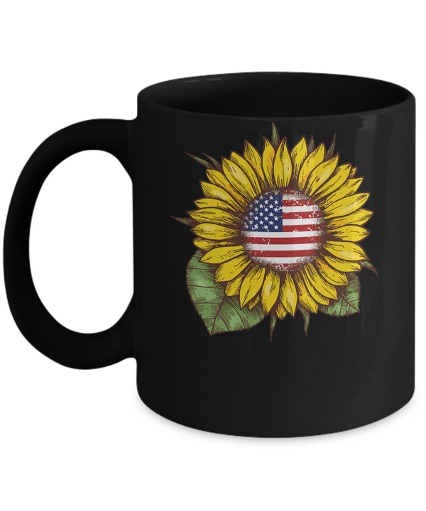 Hippie Sunflower American Flag 4th Of July Mug for Festive Celebrations
