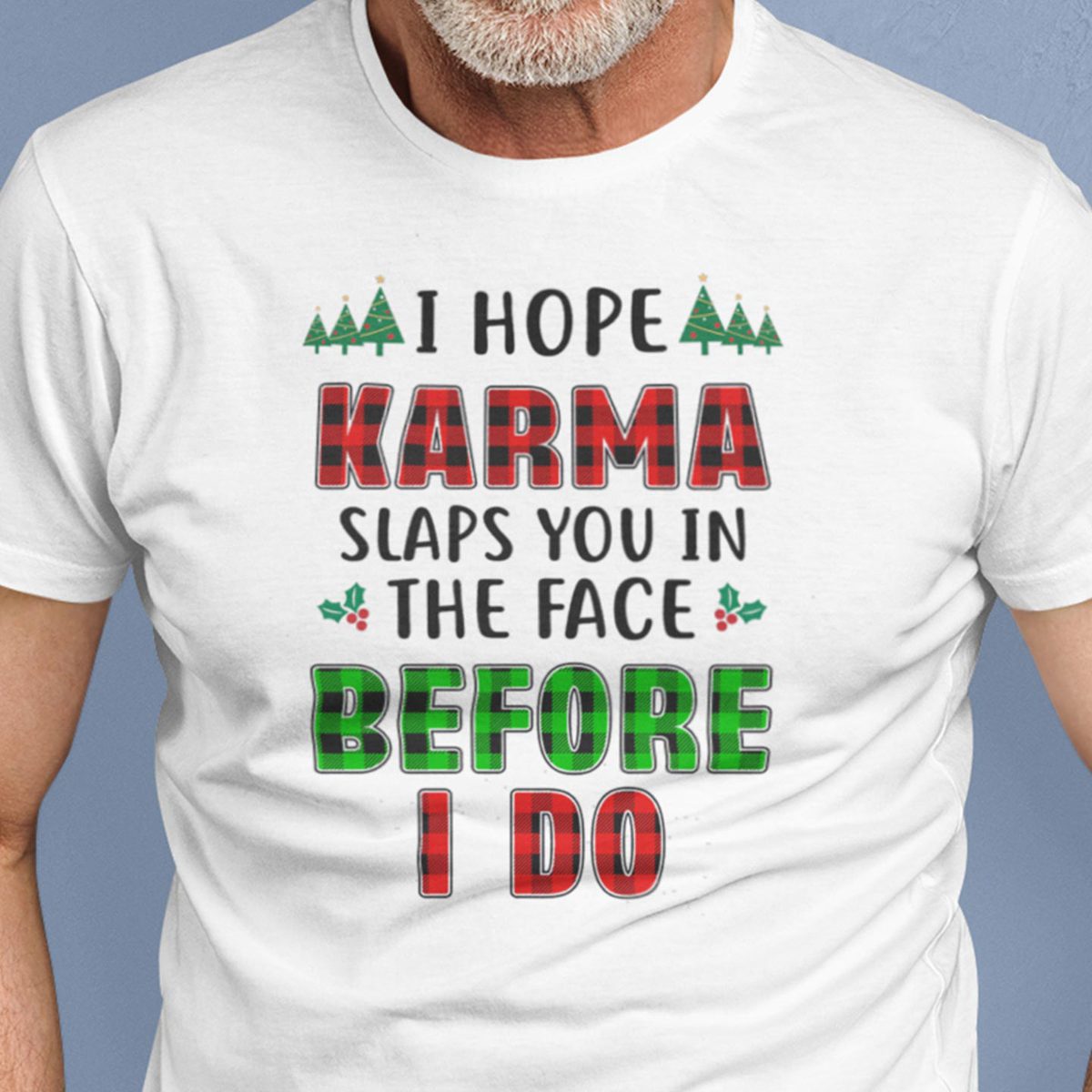 Introduce a dose of humor to your holiday celebrations with the I Hope Karma Slaps You In The Face Shirt. Designed for those who appreciate a witty twist on Christmas traditions, this shirt is ideal for gifting to friends or family who love to joke around. Featuring a playful message, it’s perfect for Christmas parties, family gatherings, or cozy nights by the tree. Made from high-quality materials, the shirt offers comfort while making a bold statement. Buy the I Hope Karma Slaps You In The Face Shirt today and spread joy and laughter between loved ones this festive season! Don’t wait—get yours and share a smile!