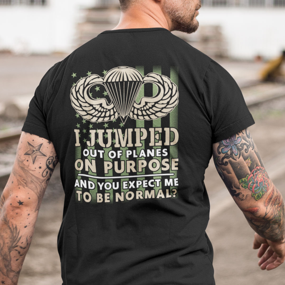 I Jump Out Of Planes On Purpose Army Airborne Shirt for Adventure Seekers and Armed Forces Fans