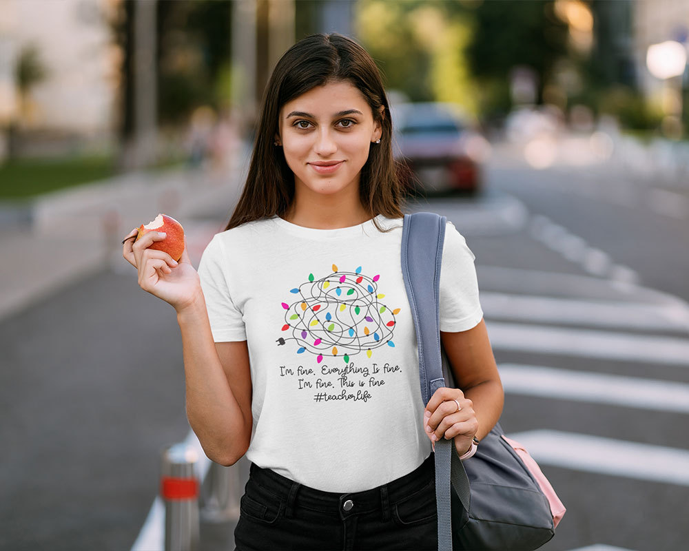 Looking for the perfect holiday gift for your favorite educator? Our I’m Fine Everything Is Fine Teacher Christmas Shirt is crafted for teachers who embrace the joys and challenges of classroom life. This shirt embodies a humorous yet heartfelt message, making it a great conversation starter during the holiday season. Made from high-quality materials, it offers both comfort and style, ideal for holiday parties or casual days at school. Delight a dedicated teacher with this unique Christmas apparel that speaks to their passion. Add a touch of cheer to their wardrobe with our I’m Fine Everything Is Fine Teacher Christmas Shirt and show appreciation for their hard work. Order now and spread the joy this Christmas!