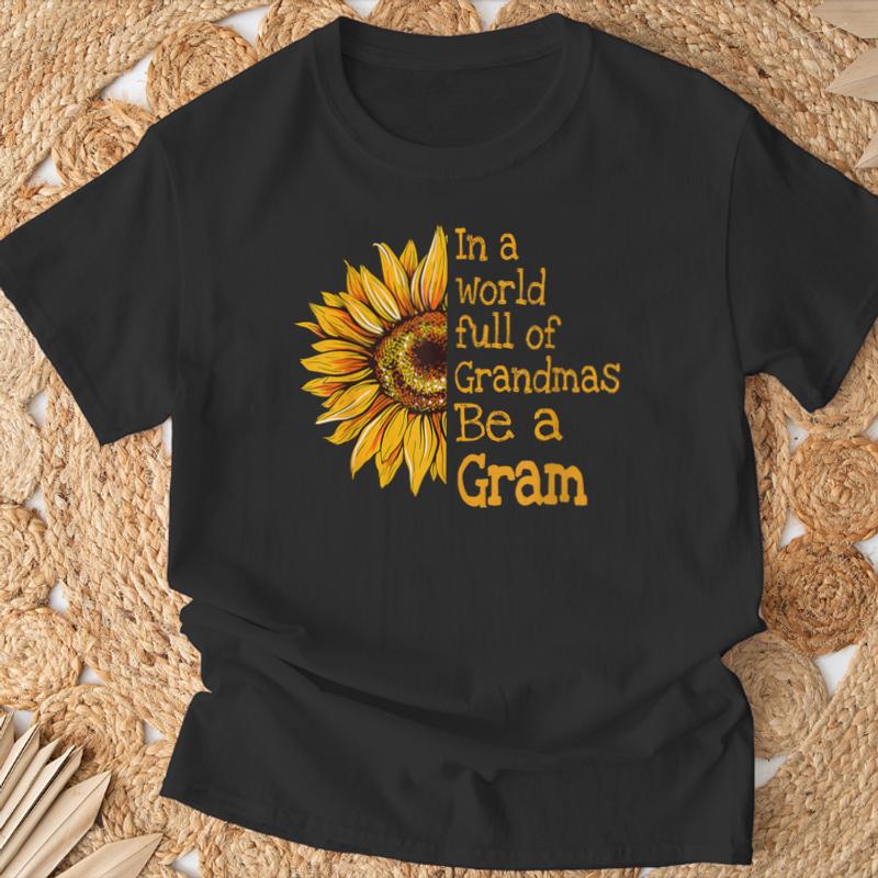 Stand out from all the other grandmas with this unique “In a World of Grandmas Be a Gram” T-shirt. This clever and humorous shirt is designed for that special Gram who is one-of-a-kind. Made from soft, high-quality material, it’s perfect for everyday wear, family gatherings, or as a fun gift to celebrate her unique personality. Let her proudly show the world why she’s a truly special Gram.