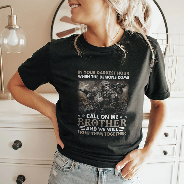 Embrace connection and strength with the In Your Darkest Hour When The Demons Come Call On Me Brother Shirt. Designed for those who want to uplift friends during tough times, this shirt symbolizes unwavering support in moments of despair. The soft, comfortable fabric ensures that you wear comfort while making a powerful statement. Whether for yourself or as a thoughtful gift, this shirt resonates with anyone going through struggles, reminding them that they are never alone. Show your support for friends facing darkness with style and meaning. Perfect for those who appreciate deep connections and emotional strength. Get your In Your Darkest Hour When The Demons Come Call On Me Brother Shirt today and spread some positivity!