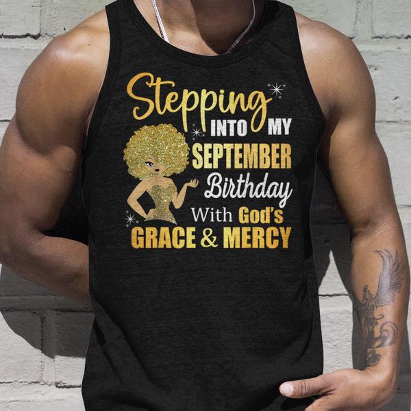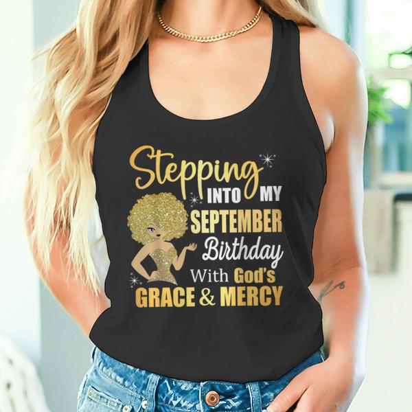 Celebrate faith and joy with the Stepping Into My September Birthday With God’s Grace & Mercy Tank Top. This Inspirational Birthday Shirt inspires positivity and gratitude. Ideal for birthdays, church events, or spiritual gatherings. Soft and durable, it’s a thoughtful gift for those who walk with faith.