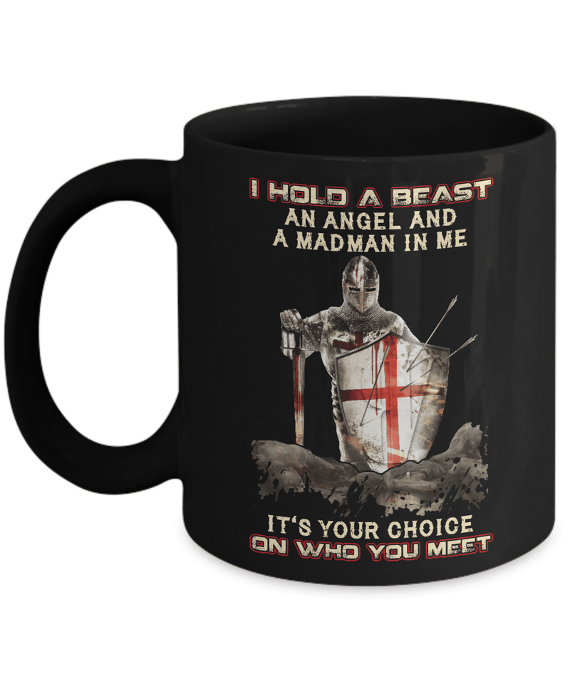 The Knight Templar I Hold A Beast An Angel And A Madman In Me Mug is perfect for those with a bold personality and love for medieval or fantasy themes. Made from high-quality ceramic, it’s microwave and dishwasher safe for daily coffee, tea, or hot chocolate enjoyment. The striking design captures inner strength, complexity, and a playful edge. Ideal as a gift for knights, history enthusiasts, or anyone who embraces the beast, angel, and madman within, this mug combines style, durability, and meaningful symbolism. Bring a unique touch to mornings, offices, or home spaces with this artistic and functional mug.