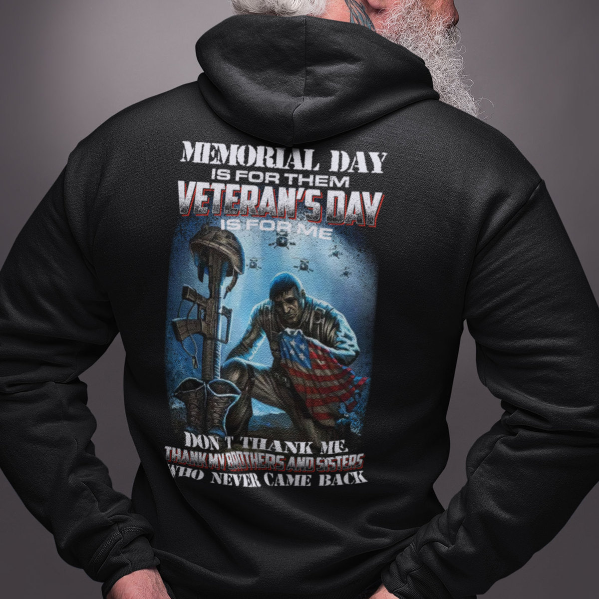 Memorial Day Is For Them Veteran’s Day Is For Me Shirt is the perfect way to show your appreciation for our brave servicemen and women. This patriotic apparel combines style and sentiment, making it an ideal fit for proud veterans, military families, and all who value freedom. Each time you wear this shirt, you’re not just making a fashion statement; you’re sharing your support for the courageous individuals who serve our country. With its comfortable fit and eye-catching design, this shirt is a must-have for Memorial Day and Veteran’s Day celebrations or any occasion where you want to honor our heroes. Don’t miss your chance to wear your pride and passion. Order your Memorial Day Is For Them Veteran’s Day Is For Me Shirt today and be a part of the tribute!