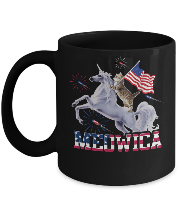 Meowica 4th of July Funny Cat Unicorn Independence Day Mug for Cat Lovers