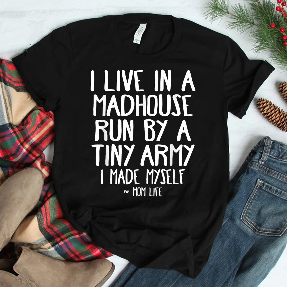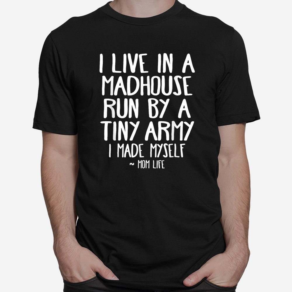 The Live In A Madhouse Mom Life Son Shirt brings humor and relatability to busy moms everywhere. With a playful design and funny message, it’s perfect for moms managing hectic family life. Soft cotton construction ensures comfort for daily wear, errands, or casual outings. This shirt makes a thoughtful gift for moms, grandmothers, or friends who understand the chaos of parenting. Its lighthearted design celebrates motherhood, family life, and humor, making it a fun addition to any casual wardrobe.