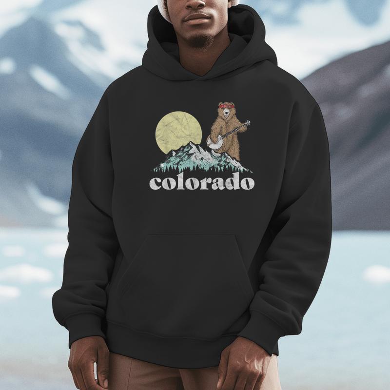 Show your love for Colorado’s creative spirit with the Mountain Music Design – Colorado Banjo Bear Retro Style Mountains Sketch Unisex Hoodie. This piece combines rustic mountain vibes with a playful bear strumming a banjo. Designed in retro sketch style, it’s perfect for travelers, musicians, and outdoor lovers who appreciate comfort and originality.