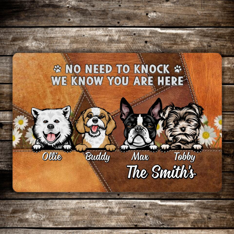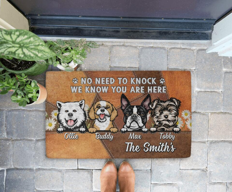 The No Need to Knock We Know You Are Here dog personalized doormat combines humor, functionality, and pet-friendly charm. Ideal for dog moms, this mat keeps your pets safe while entertaining guests with a witty message. Constructed with durable, weather-resistant materials, it’s perfect for indoor or outdoor use. Personalization options allow you to add your name, a dog’s name, or a clever family message. This mat is a thoughtful, practical gift for any dog-loving household, ensuring everyone feels welcomed and entertained at your doorstep.
