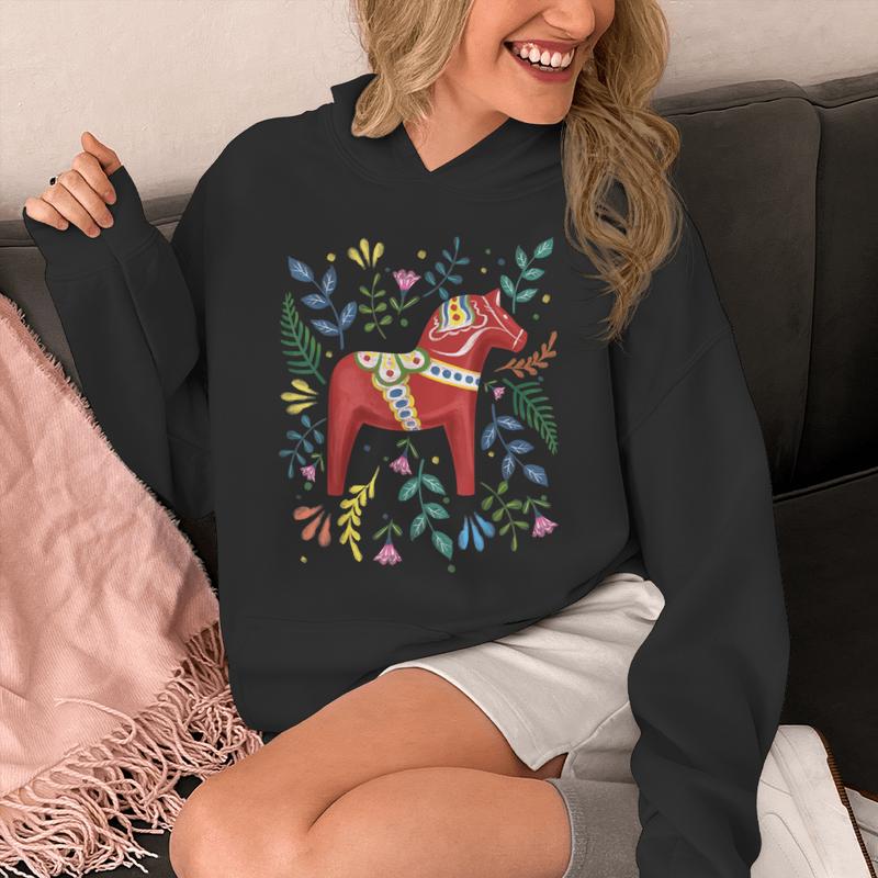 Honor timeless tradition with the Swedish Dala Horse Folk Art Hoodie, a stylish tribute to Scandinavian heritage. The Dala horse — a beloved Swedish symbol — is beautifully reimagined in this detailed design. Crafted with soft, warm fabric, it offers comfort during chilly evenings while expressing cultural pride. Whether you have Swedish roots or just admire folk art, this hoodie connects fashion with history. Its minimalist aesthetic and national colors make it versatile and elegant. The Swedish heritage hoodie is perfect for travel, casual outings, or thoughtful gifting. It celebrates artistry, craftsmanship, and cultural identity in a wearable masterpiece that blends vintage charm with modern comfort.