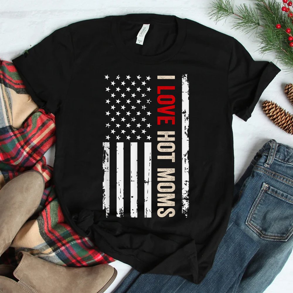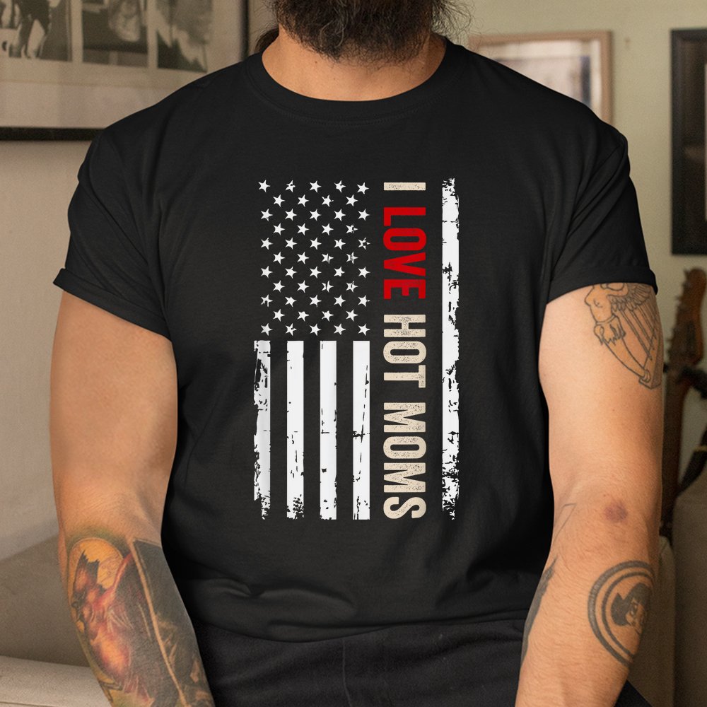 Patriotic Mom Shirt – I Love Hot Moms American USA Flag Shirt